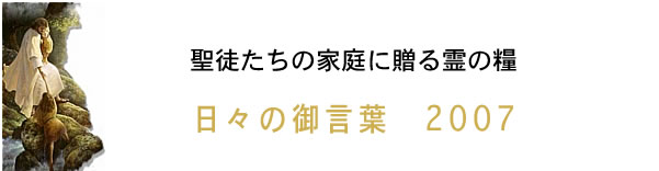 皆様は、2007年をどのような計画とビジョンを持ってお迎えになりましたか? 2007年も昨年に引き続き、「日々の御言葉」をお届けします。皆様と共に御言葉の恵みを分かち合うことが出来れば幸いに思います。 |