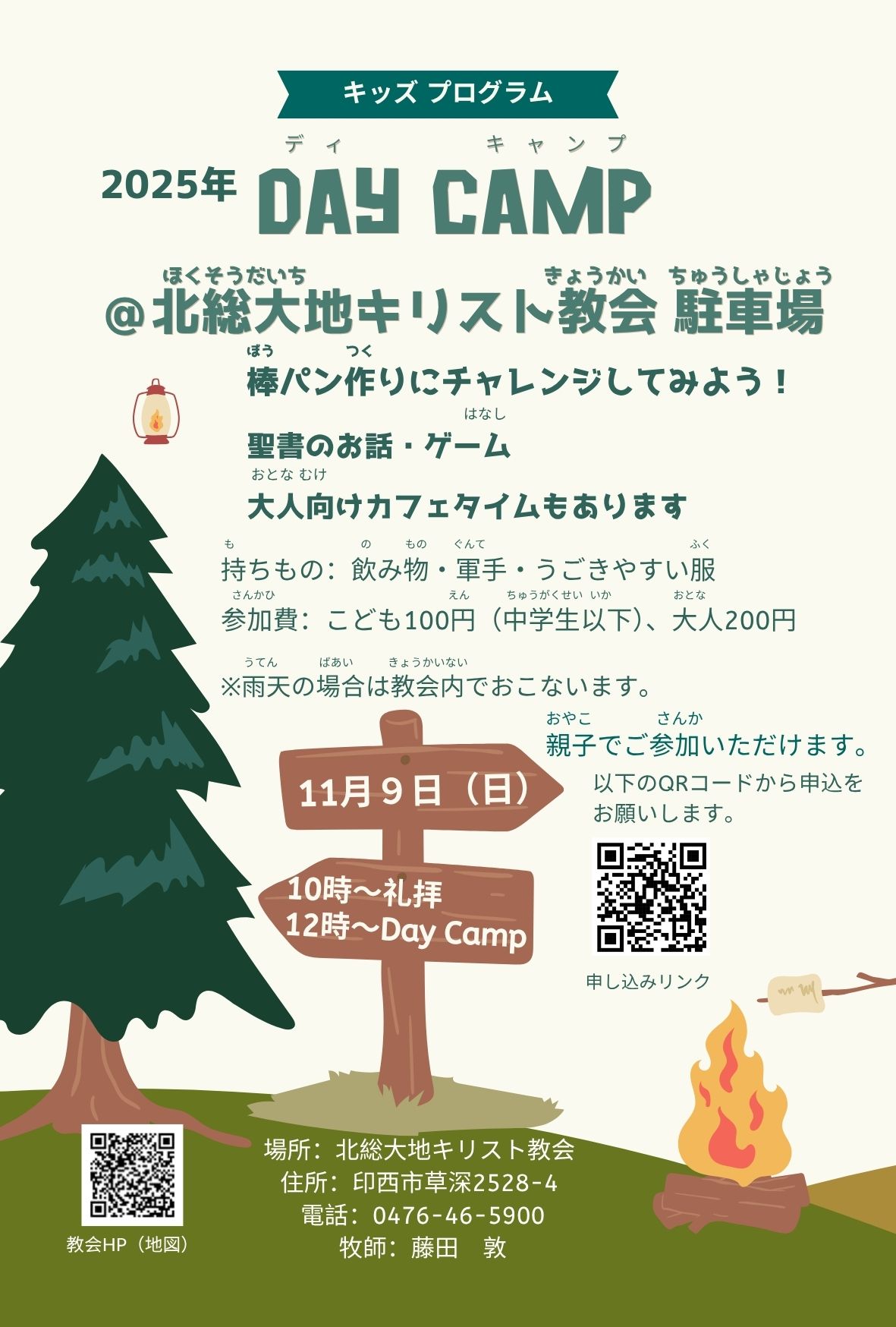11月9日(日)のキッズプログラム☆DayCamp(ディ キャンプ)☆のご案内です。