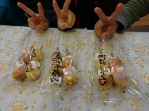 お菓子作り 大成功!!! 2017年2月6日 / 教会さん 8人のお友達がお菓子つくりに挑戦しました。「ママに一本あげよう!!!」「全部一人で食べるんだ!」 ワイワイ、ガヤガヤ楽しそう。あらっ!?Aくん、お皿の上にこぼれた星形砂糖をつまみぐい…見つかっちゃった!!! 素敵なお土産を持って、満足した表情で帰っていきました。お家の方の評判はどうだったでしょうね。 来週の月曜日(2月13日)にも同じプログラムが用意されております。ぜひ来てくださいね。