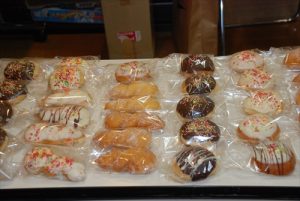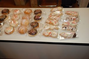 12月15日は子どもクリスマス会でした。今年3年目のなるドーナツ食べ放題、今回はパン屋の『muku』さんのご協力で、スペシャルドーナツを作ってもらいました おいしそう(*^▽^*)