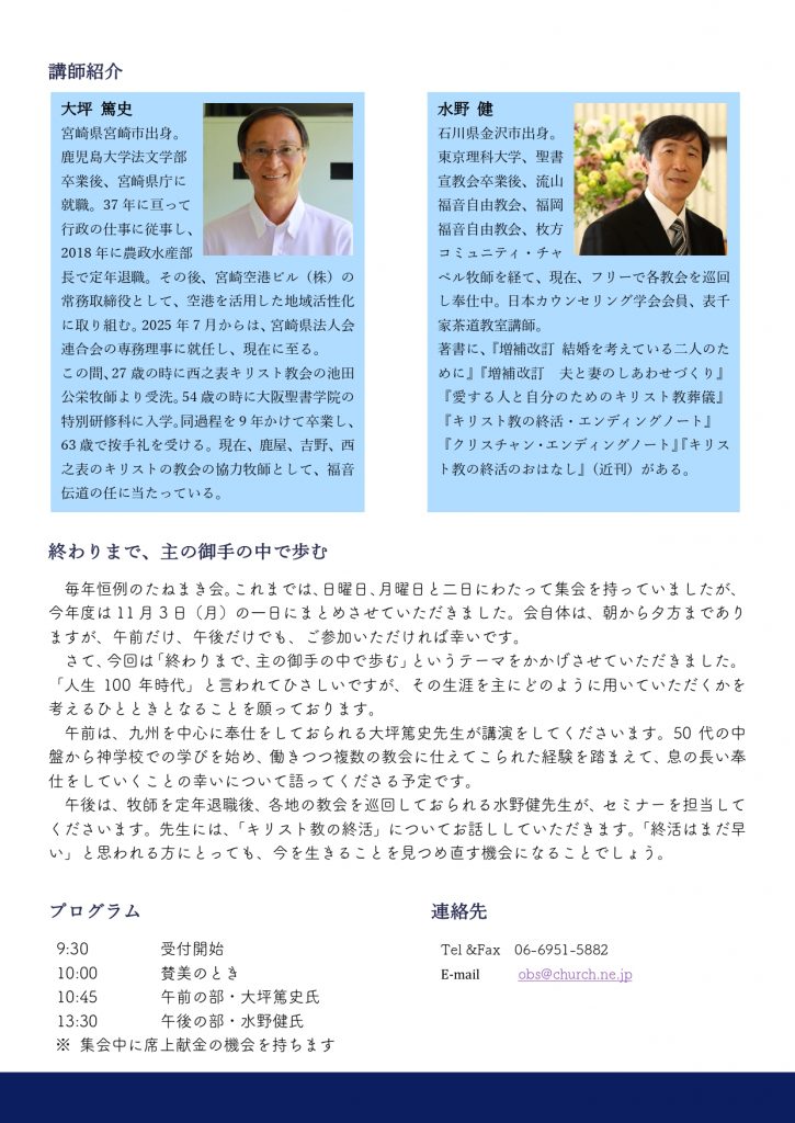 いつも大阪聖書学院をお支えくださる皆様と、共に主をほめたたえる恵みのひと時となることを願っています。