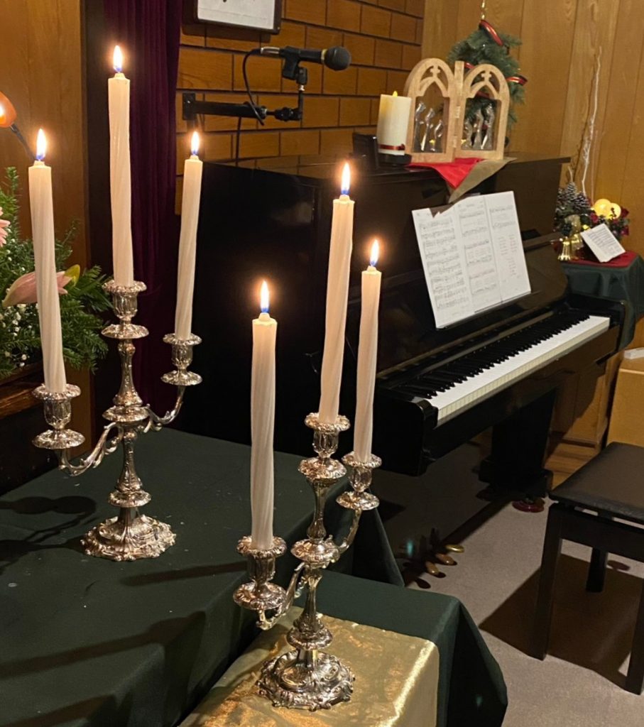たくさんの小さなキャンドルライトを灯し、暖かな光の中、クリスマスイヴ礼拝が持たれました。