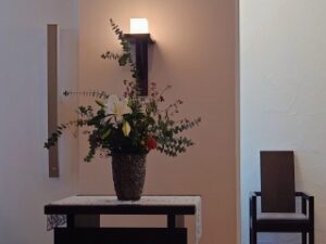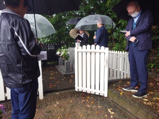 礼拝の後、青谷墓地に移動しました。雨の中、かさをさして、みことばを聴き、賛美と祈りをささげました。