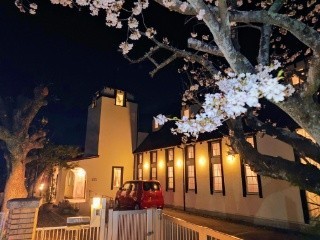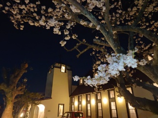 祝され、感謝でした。教会の桜は満開、夜桜と教会堂の美しい景色が広がっていました。