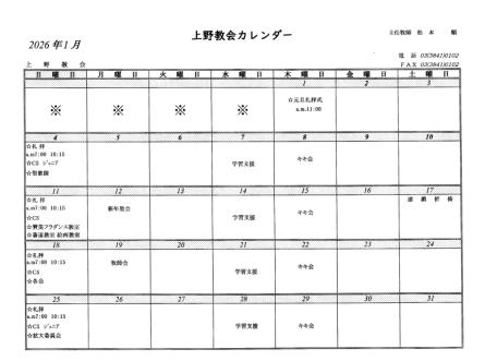 2026年1月の予定