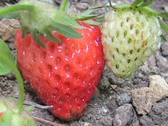 虫たちにとってもいちごは、美味しい御馳走のようです。