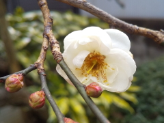 教会の中庭の白梅の開花(13:43)
