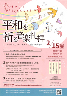 「平和を祈る音楽礼拝」のお知らせ