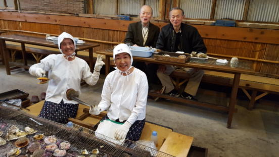 2017年12月国崎漁港にて釣り大会 (山口先生、吉川先生、小松先生) |